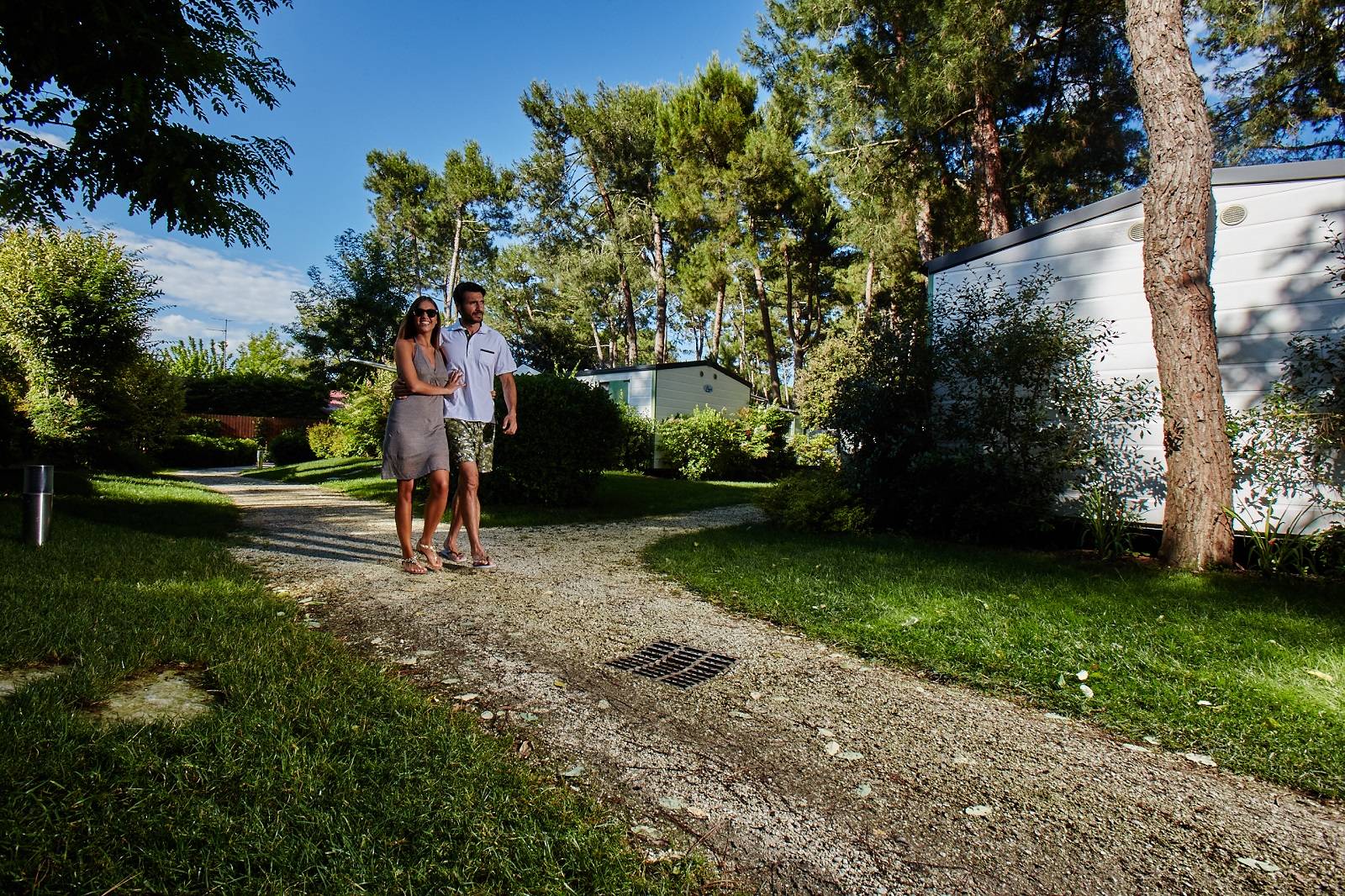With interiors in shades of marine blue and a bright wooden terrace surrounded by greenery, Chalet Sole Classic I (units 1 to 20) recalls the relaxed atmosphere of seaside holiday homes. Ideal for families, it offers two bedrooms and two bathrooms for a comfortable, peaceful stay.