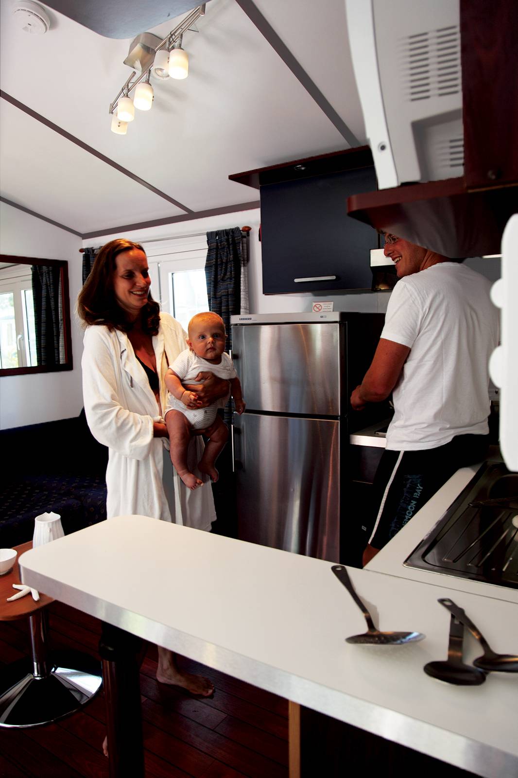 Welcoming and functional, Chalet Sole Classic I features a fully equipped kitchen, a living room with sofa bed, and two bright bedrooms. The two bathrooms add everyday convenience for the whole family, while the paved terrace with awning and outdoor furniture is perfect for relaxing outdoors.