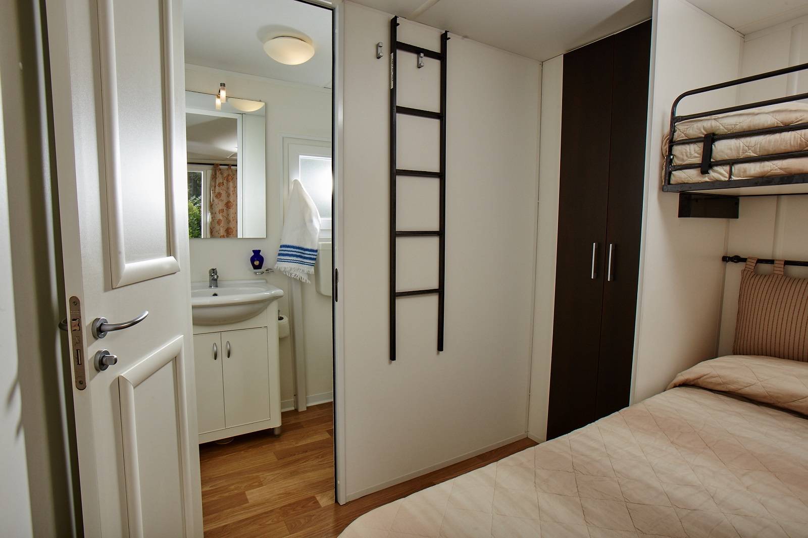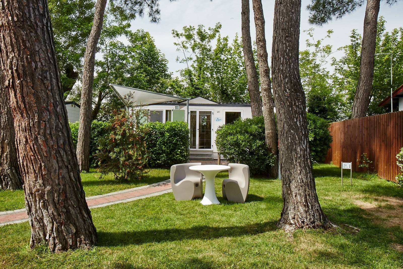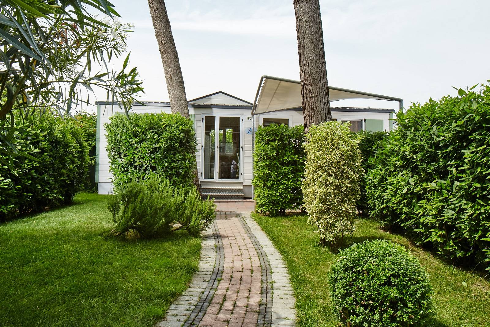 Chalet Sole Classic II brings together comfort and style with warm, inviting interiors, two spacious bedrooms, and two bathrooms. The fully equipped kitchen meets everyday needs, while the terrace – tiled or wooden – is the perfect setting for al fresco meals and relaxing moments in the sea breeze.