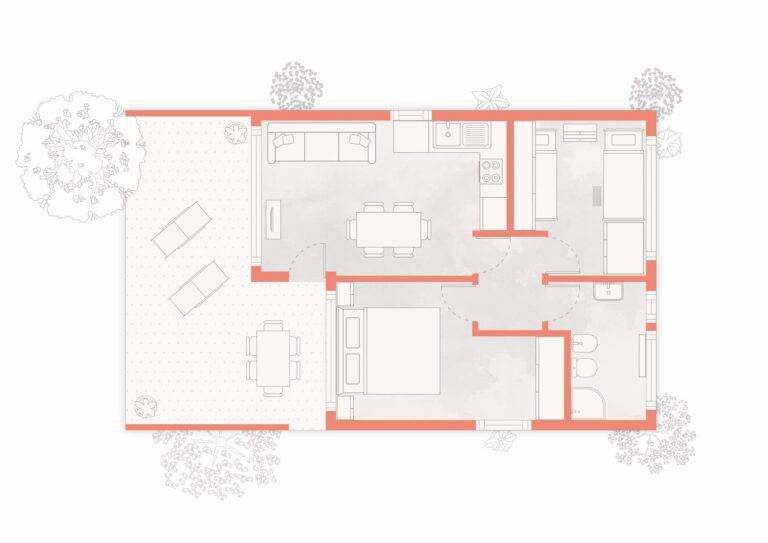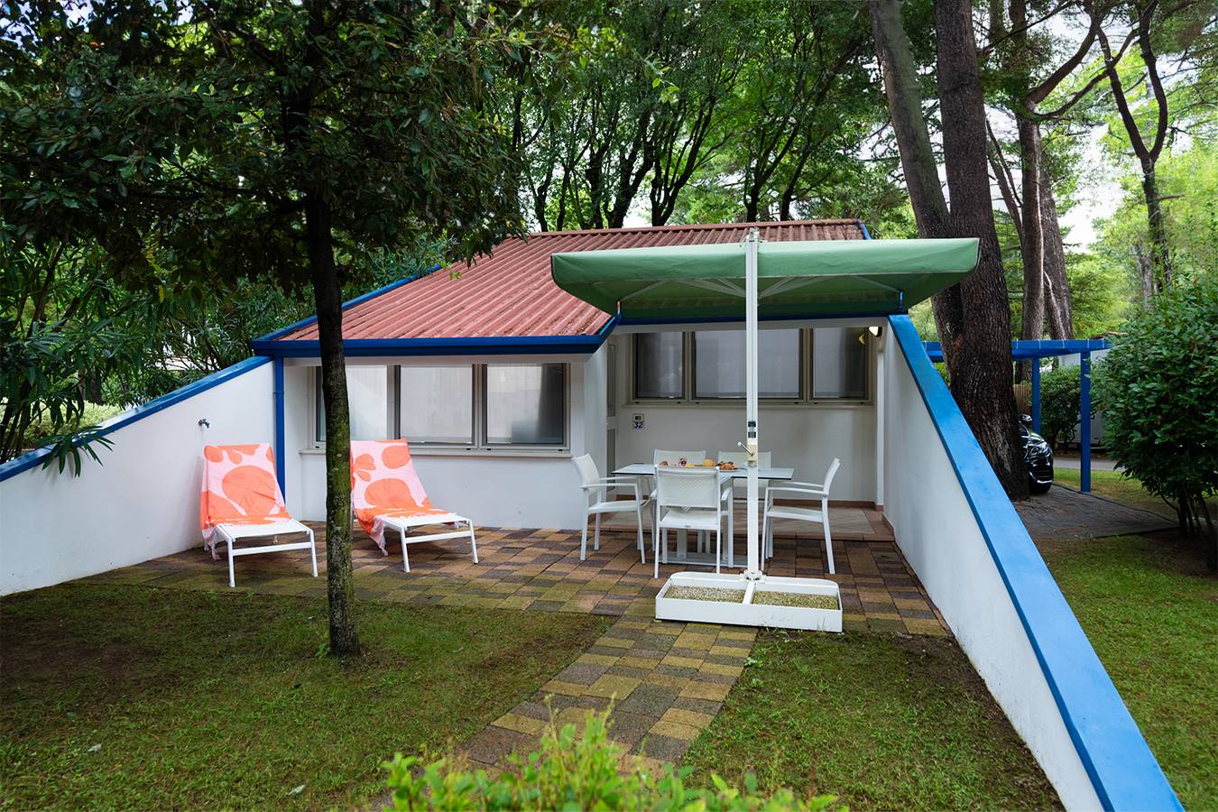 Il Bungalow Garden Central unisce la praticità della posizione alla tranquillità della natura. Ben attrezzato e a pochi passi dai servizi principali, offre il giusto equilibrio tra comfort, privacy e vita all’aria aperta.