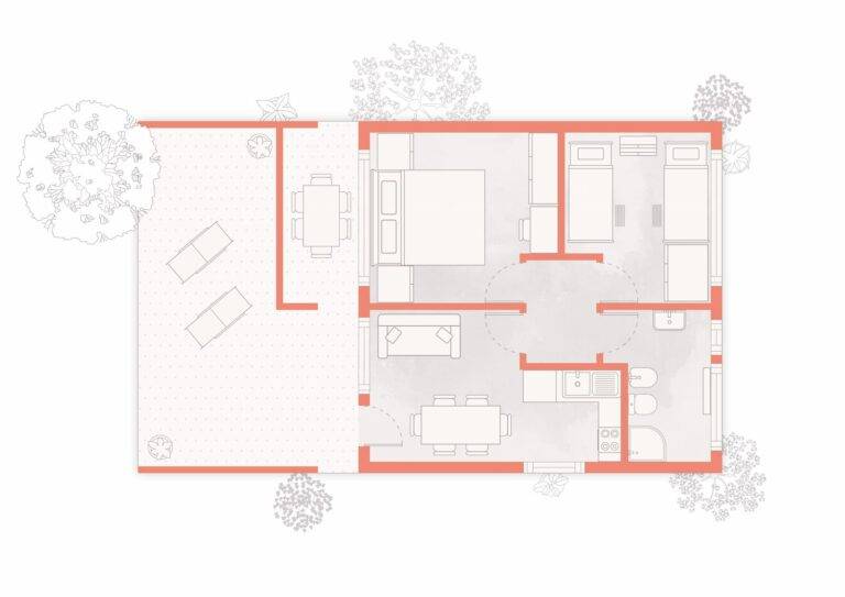 Accoglienti e funzionali, i Bungalow Garden offrono spazi luminosi con soggiorno, cucina attrezzata e due camere separate. La terrazza pavimentata e parzialmente coperta è ideale per i momenti di relax all’aperto, mentre climatizzatore, cassaforte e postazione spiaggia riservata completano un soggiorno comodo e piacevole per tutta la famiglia.